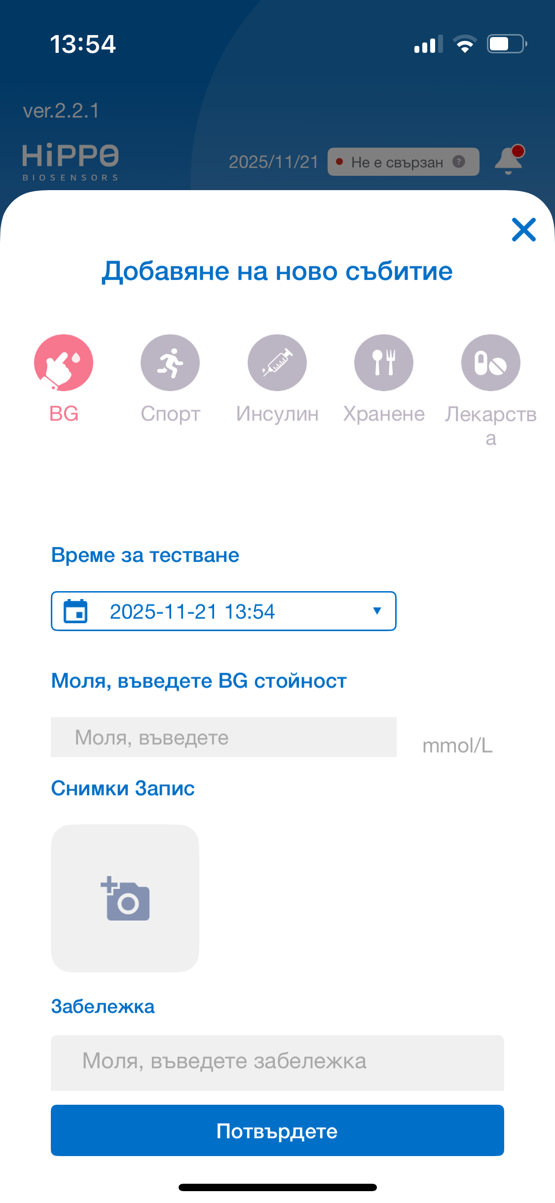 *За най-добра персонална точност качвайте едновременно снимка и BG стойност.